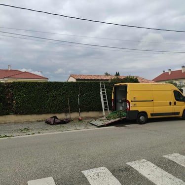 Taille de haies et entretien des espaces verts.